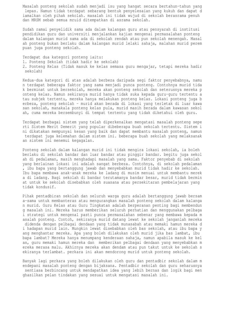 0 ratings0% found this document useful (0 votes). Ponteng merupakan satu perbuatan salah laku dan mel. See more of kelab ponteng sekolah on facebook. Truancy, cuting school, played truant. Ponteng sekolah sebenarnya tidak pernah menjanjikan.